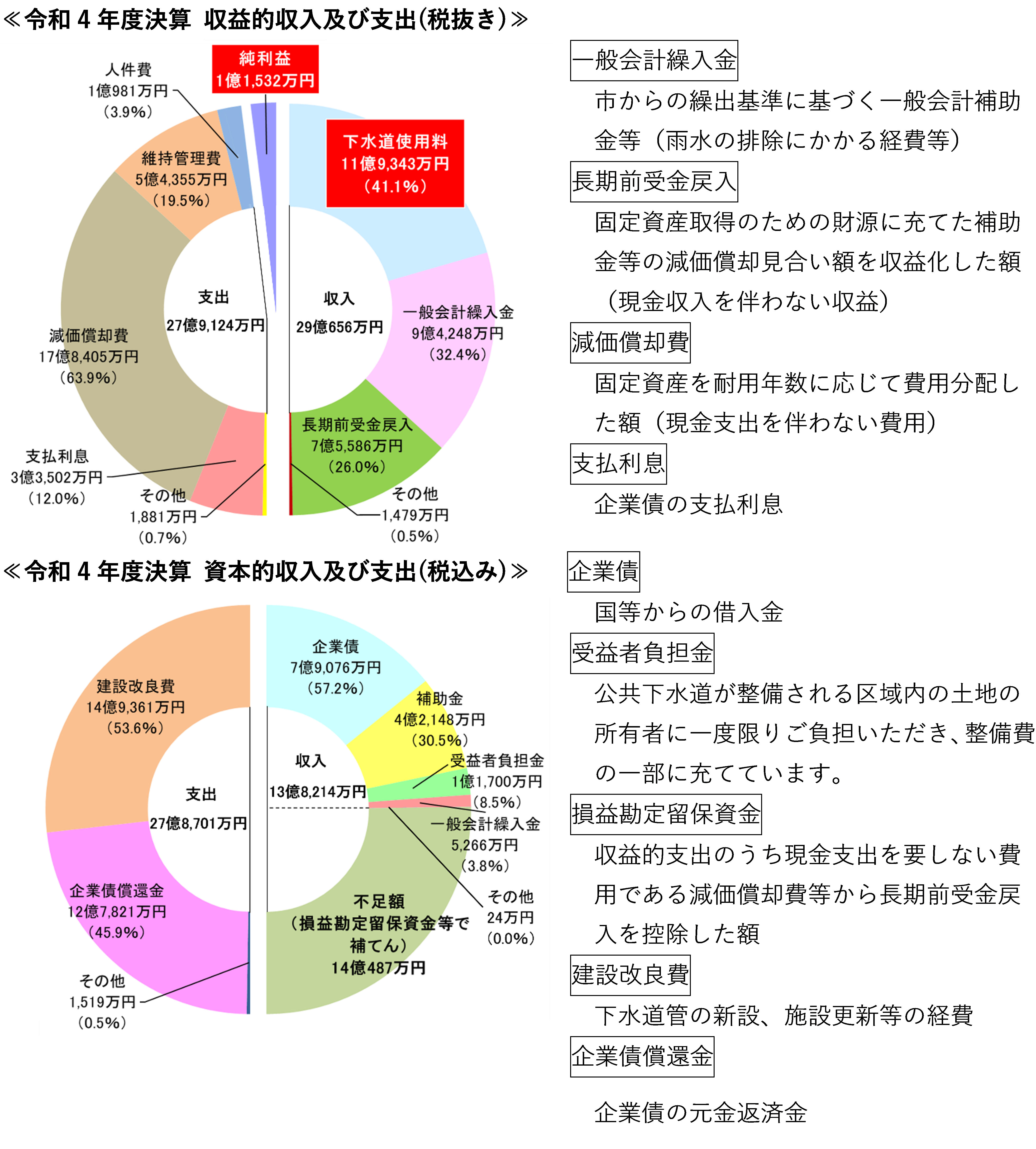 A4.公共下水道事業にかかる経費の負担は、雨水の排除にかかる経費は公費負担(税金)、汚水の処理にかかる経費は使用者負担(下水道使用料)とする「雨水公費・汚水私費」が原則とされており、地方公営企業法に基づいた独立採算制により事業を運営しています。