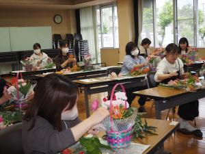 今年度の第一回目の学習会には、昨年度の運営委員さんが4名参加され、これまでより多くの方々の参加をいただき、第一回目の学習会「フラワーアレンジメント」が開催されました。講師は、石野啓子先生(フラワーアレンジメント講師)です。先生が、受講者のために様々な準備をされておられたので、時間内に皆さん、個性あふれる作品を完成されていました。参加者は、皆さん、大変満足されていて、また、是非やってみたいという意見が多くありました。
