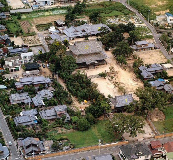 1.仁王門 2.本堂 3.持仏堂(客殿) 4.聖天堂 5.事務所 6.駐車場 |