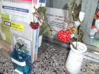 ”曇り”北東のち東の風、波の高さ50センチの予報。 ”島民学級”籐を使って小物作り教室が、二度にわたる連絡船の欠航で中止となりましたが、講師の倉重先生が見本として持って来られたアザレアは、背後のビナンカズラと供に漁村センターロビーを、なごませています。 |