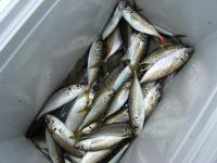 ”釣り情報”今朝の便で4人の方がお見えです。お昼に伺うと3人の方が新波止湾内で釣っていらっしゃいました。今日の釣果は「数はまずまずですが、形が小さくイマイチ・・」とお返事がありました。 新波止湾内で釣れたコノシロ 東の波止で釣ってらっしゃった方は「スズキ狙いですが、不調です。」とお返事くださいました。取材帰りに島の方から「数日前にスズキの大物が上がったらしい・・」とお聞きしました。昨日の取材時にも若い方がスズキ狙いと仰っていましたので、情報が伝わっているのでしょうか・・?