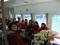 ”晴れ”東のち西の風、波の高さ50センチの予報。昨日に続き良く晴れていますが、風が冷たい今日の野島です。 ”映画教室”日本昔話より「山伏岩」ほかと日本桜紀行中国・四国編を放映しています。 今日は少ない人数での鑑賞となりました。 ”又来てくださいね”東の波止近くで野島港へ向う県立大学ワンダーフォーゲル部の学生さん達とすれ違いました。その中のお1人に合宿の感想をお聞きしたところ「昨日はアジが100尾以上釣れ、とても楽しかったです」と元気良くお返事くださいました。 帰りの船の中 |