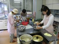 エプロン掛けで奮闘中の市民活動推進課長 「はーい、出来上がりました」 |
