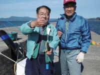 ”釣り情報”今朝の便で常連さん2人がお見えでした。お昼に伺うと、中波止に1人だけがいらっしゃいました。風が吹いて波もうねっていたせいか、1人の方は竿を出さずに帰られたとのことでした。 中波止の釣果 アジの下にウマヅラハギもいます 工事のため来島されている方から「釣れていますか?」と問われたKさん 「午前中は新波止で不調でしたが、ここへ来て直ぐにアジが3尾釣れたので、午後に期待します」と応えていらっしゃいました。 |