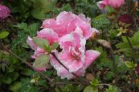 ”雨のち曇り”北の風、波の高さ50センチの予報。出勤時は雨足が強かったのですが、お昼前には上がり、薄曇りとなりました。 曇り空のした、センター前庭のアザレアが薄いピンクの花を咲かせています。 |
