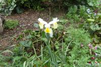 ”雨”海上では南の風やや強く、波の高さ1メートル50センチのち50センチの予報。朝から花散らしの雨が降り続いています。 ロビーを飾る「クチベニスイセン」