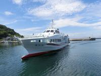”野島の工事”現在、野島に2つの大きな工事が入っています。山の上にある上水道配水池の更新工事と、学校の耐震補強工事です。工事関係者、資材、工具等の搬入搬出で、桟橋は暑さに負けないくらいに活気があります。 猛暑の中、元気よくレインボーあかねが入港してきます。青い空、青い海、夏です。みんな、外へ飛び出そう。 |