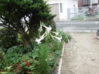 ”雨ときどき曇り”東のち南西の風、波の高さ50センチの予報。今日の野島は台風の影響でしょうか、朝から蒸し暑い陽気となりました。 センター前庭のユリ 今、島内のアチコチで白いユリが咲いています。