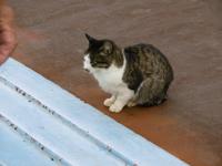 ”曇り時々晴れ”南東のち東の風、波の高さ50センチの予報。午前中は晴れ間が見えましたが、午後の野島の空はどんよりしています。 ”おねだり上手なシマネコ” 「おいしい魚が食べたいニャー」 中波止湾内浮桟橋で釣り中の常連さんの側にジーッと蹲っています。 |