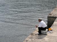 ”ポツ・ポツ・・・”曇って風の冷たい野島です。今朝の連絡船には7人の釣り人が乗られていました。エギングとルアーの両方をされる方1人とルアー専門の方1人、クロ釣りの方1人が新波止へ向かわれ、残りの4人がアジ釣りで中波止へ入られました。エギングについては、アタリが無いということで、ルアーにもエソが1匹きただけとのことです。中波止のアジ釣りは、規模の小さな群が時たま回って来るようで、ポツ・ポツと釣れる(18~23センチくらい)程度のようです。クロ釣りの方を残して他の方は、昼の便で帰られましたが、残られたクロ釣りの方は、新波止が風強く、寒いため、中波止でのアジ釣りに変更するそうです。