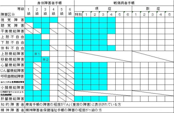 | 身体障害者 戦傷病者 精神障害者 |