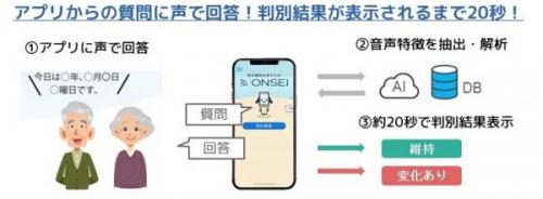 簡単な質問に声で回答するだけで、認知機能の変化を知ることができるアプリです。 場所を選ばす、自分で簡単にできる「セルフチェックツール」です。