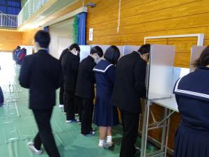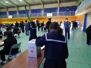 立候補した1・2年生12名の中から自分たちの代表者を選ぶため、全学年の生徒191名が一票を投じました。